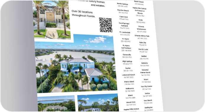 On the following pages Boca Raton Naples Ritz-Carlton you’ll find our latest 561 981 9400 Beach Resort collection of luxury homes Bonita Springs 239 598 6685 and estates. 239 390 4000 Naples Ritz-Carlton Boynton Beach Golf Resort at 561 742 4700 Tiburón Over 30 locations 239 254 3341 Cape Coral throughout Florida. 239 443 3160 Ocala 352 622 9700 Coral Springs/ Parkland Orlando 954 752 5100 Windermere Ft. Lauderdale 407 876 2090 954 449 2700 Orlando Winter Park Ft. Myers 407 406 5300 239 482 5700 Palm City Ft. Myers 772 219 1111 Gulf Harbour Port St. Lucie 239 466 9905 772 871 7411 Gainesville Sanibel 352 225 4700 239 472 0176 High Springs Sarasota 386 454 7373 941 225 7355 Jupiter 561 354 1700 Sarasota/ Palmer Ranch Lakewood Ranch 941 556 2150 941 907 2000 Stuart Marco Island 772 283 2800 239 394 2505 Melbourne Sun City Center 321 768 7600 813 642 1500 Miami Venice 305 774 5889 941 207 5055 Mount Dora Vero Beach 352 729 7325 772 231 1270 Naples Fifth Avenue Wellington 239 659 2400 561 209 8900 Naples Park Shore Weston 239 659 4200 954 315 6000 Corporate 954 693 0100 BEBRHKHSFSHIRLEORHAIDTHAARWEAAYLTHYS..CCOMOM 4123