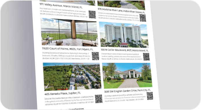 971 Valley Avenue, Marco Island, FL 670 Marbrisa River Lane, Indian River Shores, FL Four-bedroom, 2.5-bath well-maintained home, on an oversized Gorgeous coastal lakefront pool home in a gated community with lot, features outdoor living at its best with a huge pool and lanai. ocean-to-river access. Boasts 3 bedrooms plus a den and 4 baths. MLS# 224096535. $1,399,000. Nancy & Brian Stolliker, 239 207 1187 MLS# 284099. $1,395,000. Debbie Bell & Chip Landers, 772 473 7255 11620 Court of Palms, #605, Fort Myers, FL 100 N Collier Boulevard, #107, Marco Island, FL Stunning residence in Palmas Del Sol, featuring 10-foot ceilings, 3 Crescent Beach condo on Marco Island’s premier beachfront bedrooms, 2.5 baths, 2,800-plus square feet, and a lanai with electric location, boasting unobstructed views of the beach and Gulf of shutters. MLS# 223044778. $1,395,000. Marc Neeley, 239 841 4428 Mexico. MLS# 224089322. $1,395,000. Kathryn Hunt, 239 250 0797 405 Xanadu Place, Jupiter, FL 3081 SW English Garden Drive, Palm City, FL Discover the coastal lifestyle in this 3-bedroom, 2-bath pool home Stunning 3-bedroom plus office, saltwater pool home on a in the gated community of Xanadu by the Sea, a private enclave of 0.7-acre private preserve lot. Entertain in the screened-in patio. 58 homes. MLS# RX-11059758. $1,390,000. Vivian Puls, 561 401 6857 MLS# M20048443. $1,375,000. Tracy Madden, 484 343 3856 Berkshire Hathaway HomeServices Florida Realty O: 888 995 7779 bhhsfloridarealty.com 56