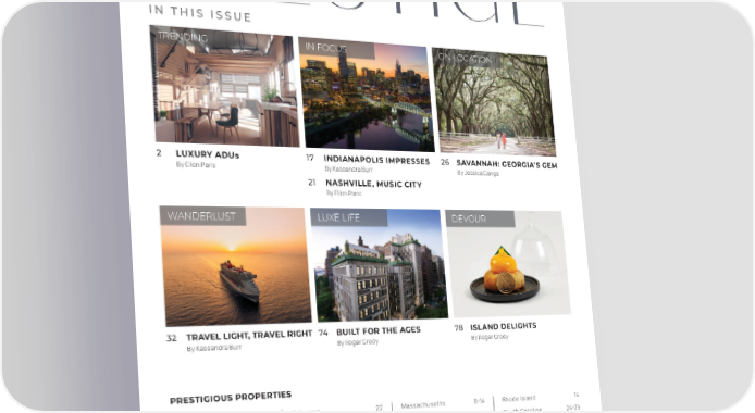 BERKSHIRE HATHAWAY HOMESERVICES IN THIS ISSUE TRENDING IN FOCUS ON LOCATION 2 LUXURY ADUs 17 INDIANAPOLIS IMPRESSES 26 SAVANNAH: GEORGIA’S GEM By Ellen Paris By Kassandra Burr By Jessica Ganga 21 NASHVILLE, MUSIC CITY By Ellen Paris WANDERLUST LUXE LIFE DEVOUR 32 TRAVEL LIGHT, TRAVEL RIGHT 74 BUILT FOR THE AGES 78 ISLAND DELIGHTS By Kassandra Burr By Roger Grody By Roger Grody PRESTIGIOUS PROPERTIES United States Delaware 22 Massachusetts 8-14 Rhode Island 14 Arizona 76-77 District of Columbia 22 Nebraska 20 South Carolina 24-25 California 76-77 Florida 35-72 Nevada 76 Texas 73 Colorado 6-7 Georgia 24-25, 28-31 New York 16 Virginia 20, 23 Connecticut 15 Hawai’i 80 Pennsylvania 18-19 France Inside back cover © 2025 BHH Affiliates, LLC. Real Estate Brokerage Services are offered through the network member franchisees of BHH Affiliates, LLC. Most franchisees are independently owned and operated. Berkshire 11 Hathaway HomeServices and the Berkshire Hathaway HomeServices symbol are registered service marks of Columbia Insurance Company, a Berkshire Hathaway affiliate. Equal Housing Opportunity.