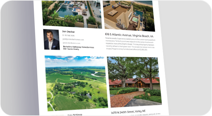 Jon Decker 616 S Atlantic Avenue, Virginia Beach, VA O: 757 560 1676 Paradise awaits. Experience coastal luxury in this custom-built oceanfront [email protected] masterpiece. Perfectly positioned adjacent to the sandy shoreline with expansive views of the Atlantic Ocean. This exquisite property has been jondeckerhomes.com Berkshire Hathaway HomeServices recently refined to the highest level. This exceptional retreat is not to be RW Towne Realty missed. Property is fully furnished and offered at $3,895,000. Amy Schinco 14711 N 240th Street, Valley, NE C: 402 871 5767 This property is quite a rare find —so private, peaceful, and quiet, all on a [email protected] stunning 33-plus acreage. Sit on expansive decking and enjoy views of amyschincorealtor.com the fully-stocked lake, grounds, trees, landscape, storms rolling in, and wildlife—such as deer and turkey. Sit on the covered porch and listen to the Berkshire Hathaway HomeServices Ambassador Real Estate brook. Take in the sunsets and cocktails to end your day. $3,595,000 20
