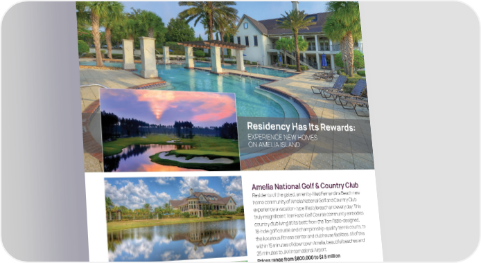 Residency Has Its Rewards: EXPERIENCE NEW HOMES ON AMELIA ISLAND Amelia National Golf & Country Club Residents of the gated, amenity-filled Fernandina Beach new home community of Amelia National Golf and Country Club experience a vacation-type lifestyle each and every day. This truly magnificent Tom Fazio Golf Course community embodies country club living at its best; from the Tom Fazio-designed, 18-hole golf course and championship-quality tennis courts, to the luxurious fitness center and clubhouse facilities. All of this within 15 minutes of downtown Amelia, beautiful beaches and 25 minutes to JAX International Airport. Prices range from $800,000 to $1.5 million Craig Brewis, REALTORĀ® Berkshire Hathaway HomeServices Heymann Williams Realty Retired Military C: 904 891 6505